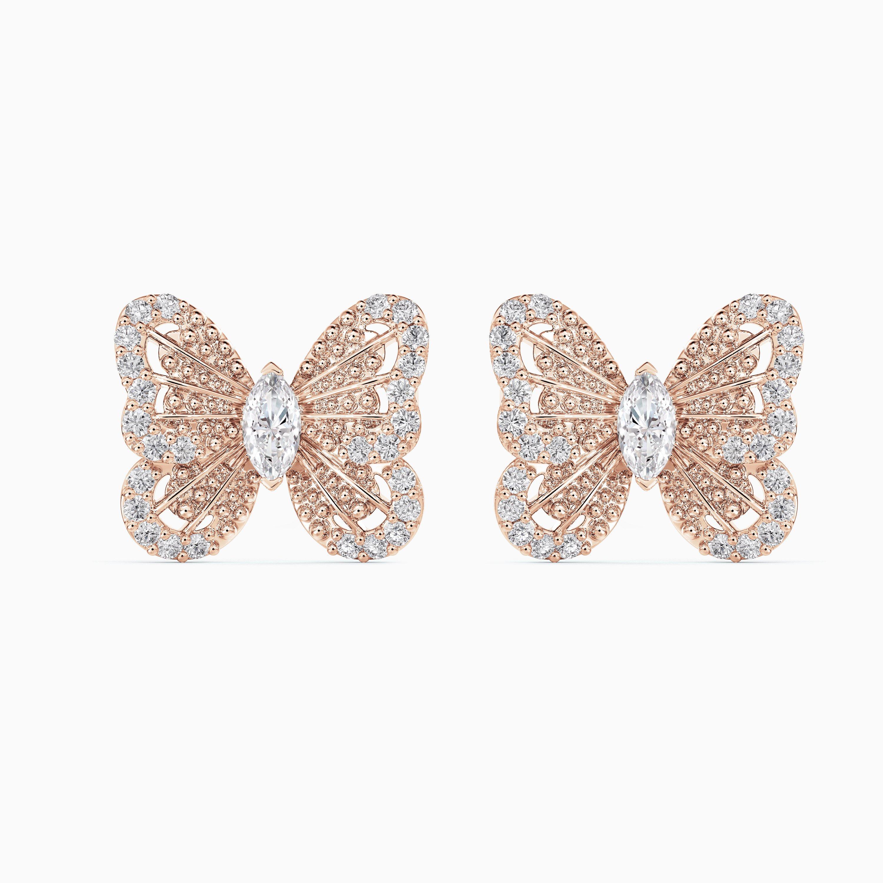 Portraits of Nature butterfly 蝴蝶玫瑰金钻石耳钉